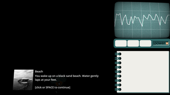 You have woken up on the black sand shores of a mysterious island. With you are a small notebook and a radio receiver. You pick up a signal in the static and seek out its source.
